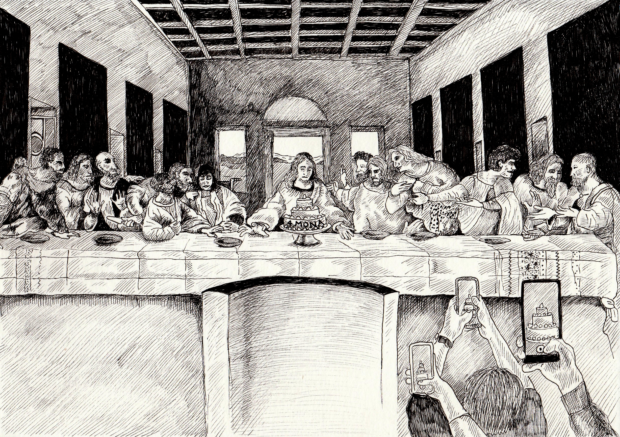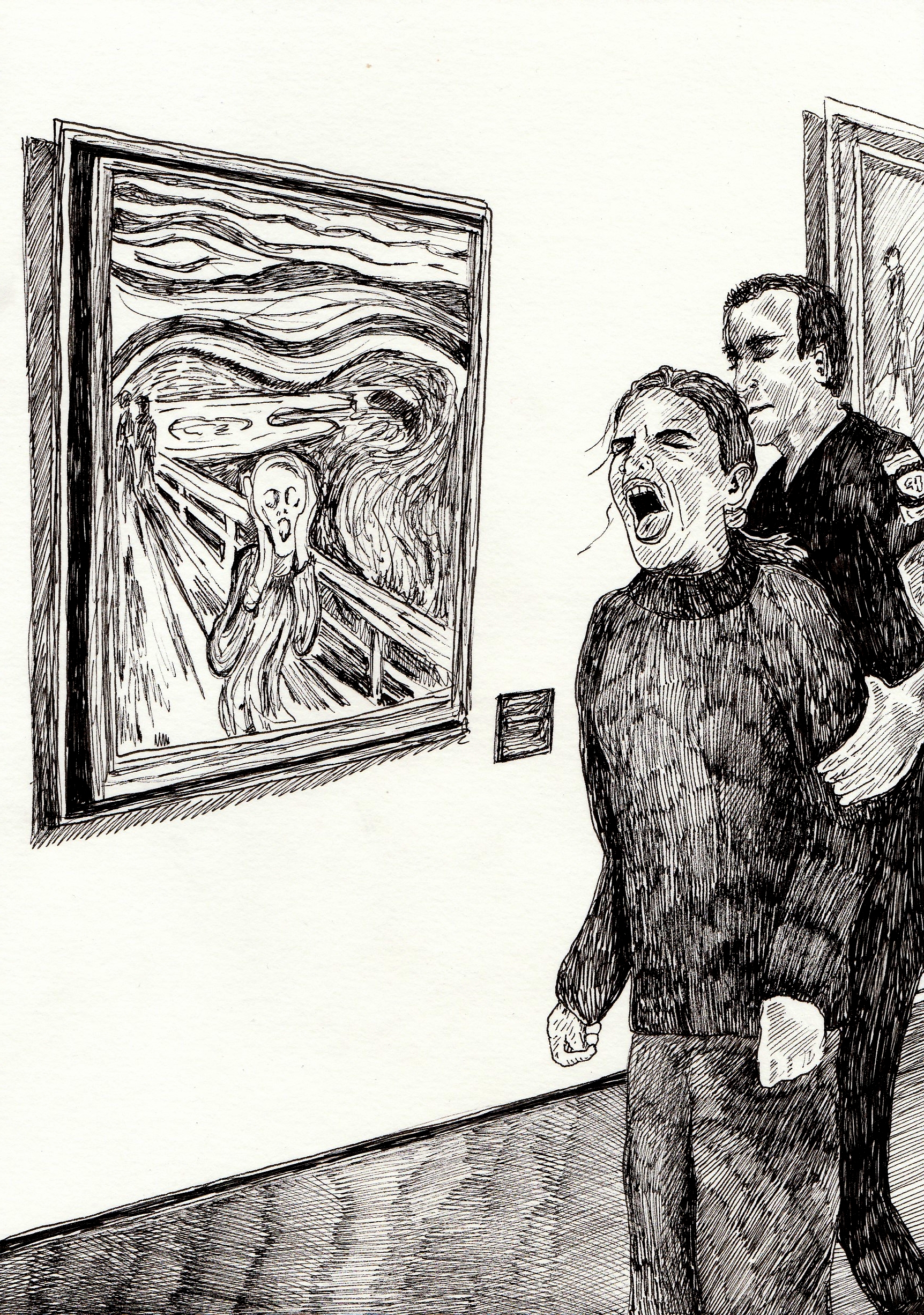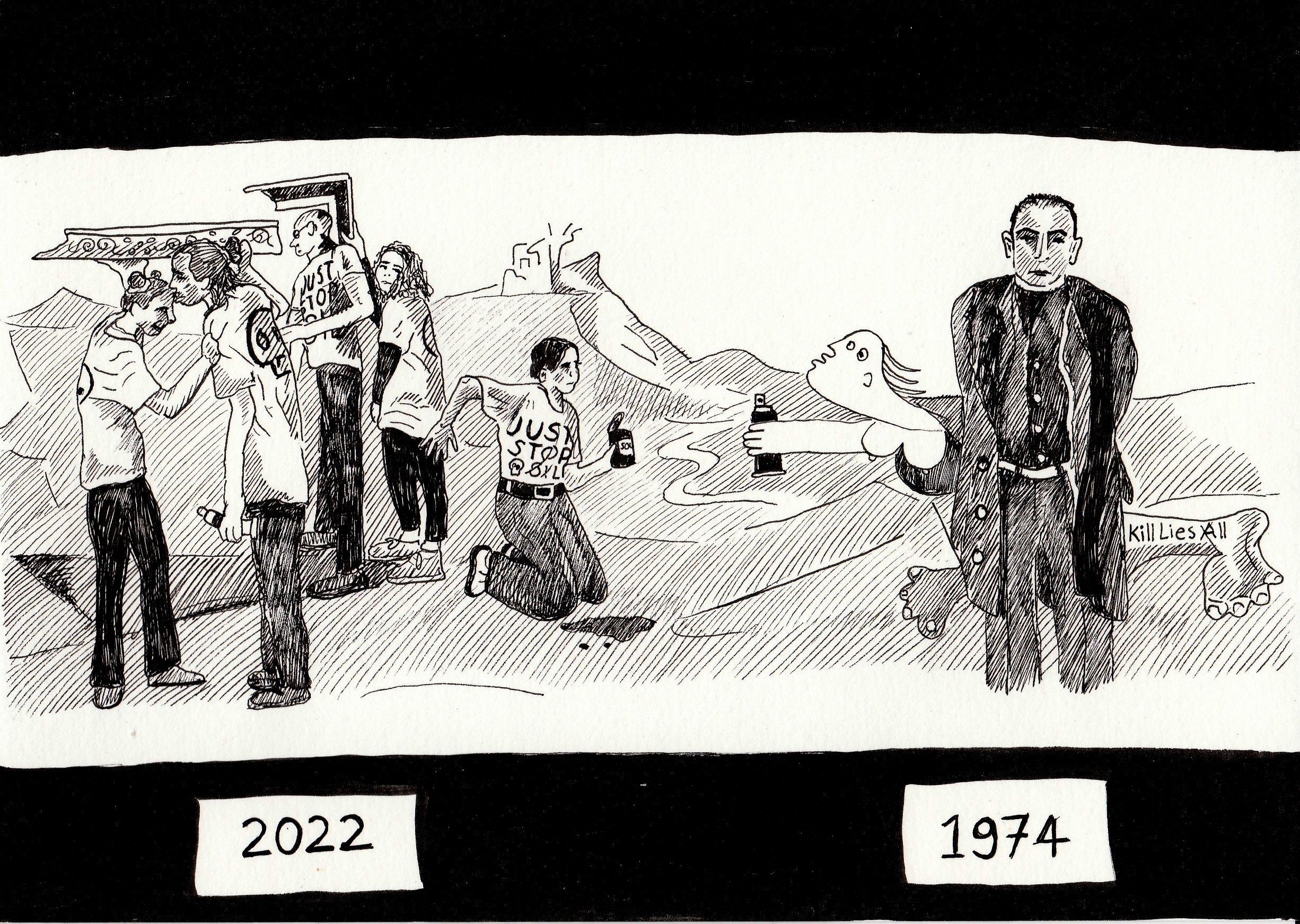 De gevolgen van klimaatprotesten in musea kleven soms letterlijk aan de kunstwerken. Zodra een nieuw protest had plaatsgevonden, tekende ik een reactie waarin kunstwerk en protest samenkomen.