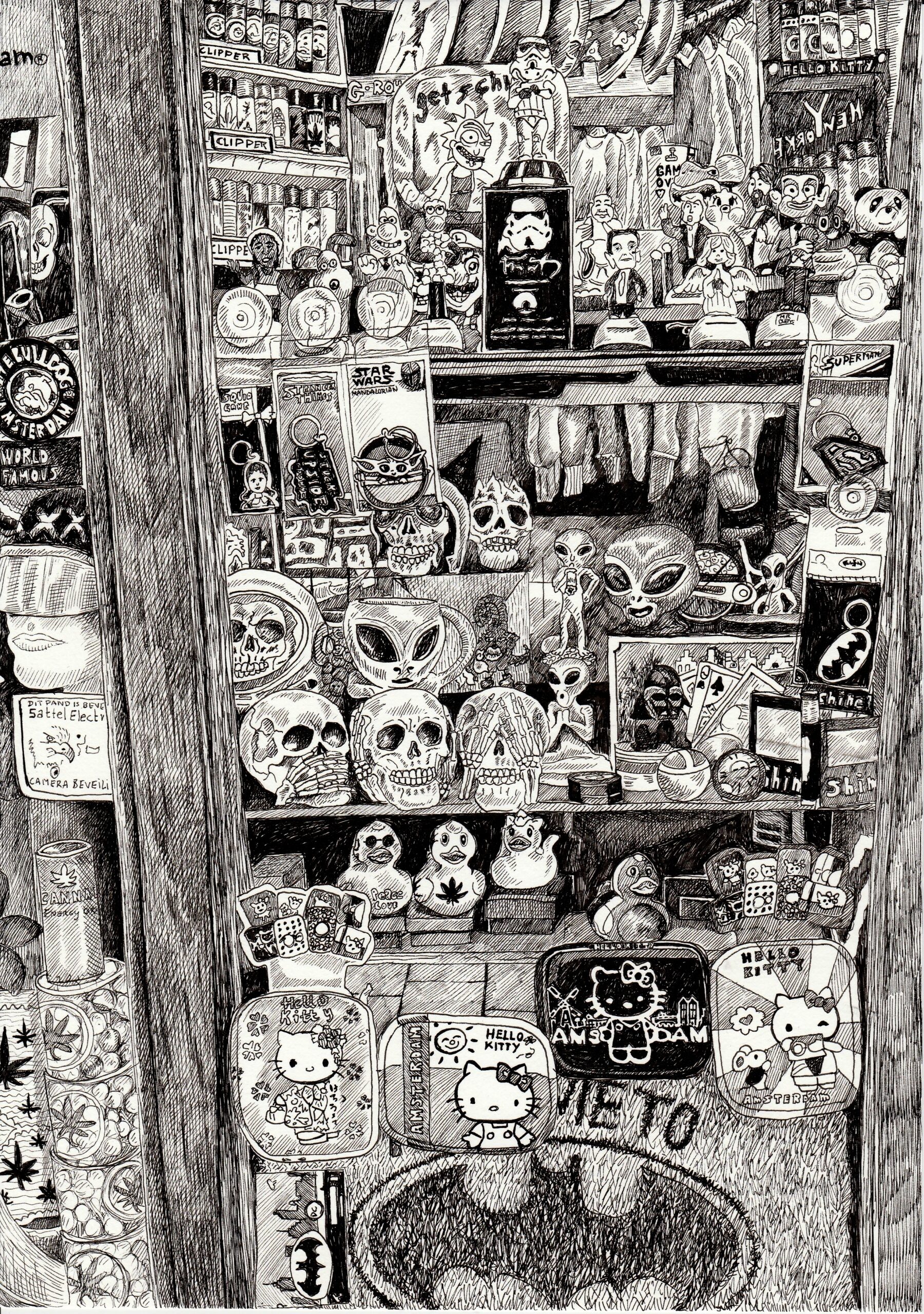 Deze 54 meter lange tekening toont een rondreis langs alle landen op het Europese continent. Het is getekend op een kassarol met fineliner. Ik heb er een jaar lang aan gewerkt.